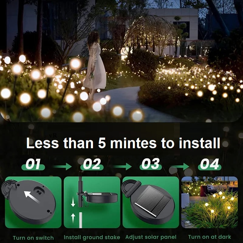 4️⃣ Enjoy the glow at night! – The lights will automatically turn on at dusk, creating a beautiful ambiance.